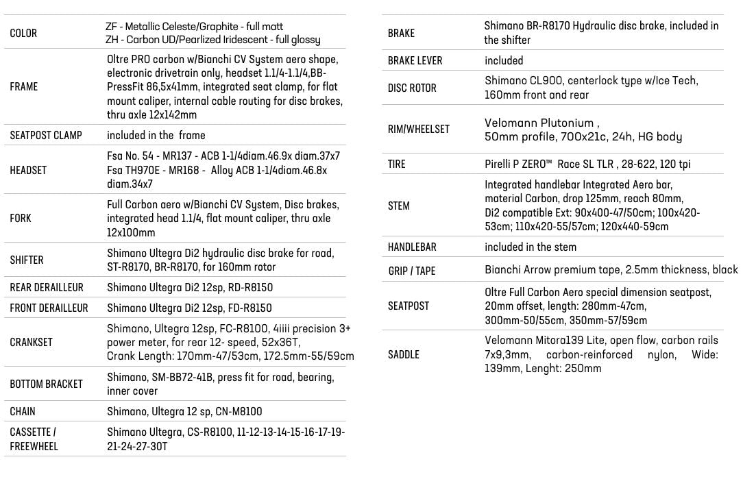 Bietet einen hervorragenden Kompromiss aus Aerodynamik und Komfort. Es ist mit hochwertigen Carbon-Laufrädern und Komponenten aus Bianchis Eigenmarke Reparto Corse ausgestattet. |