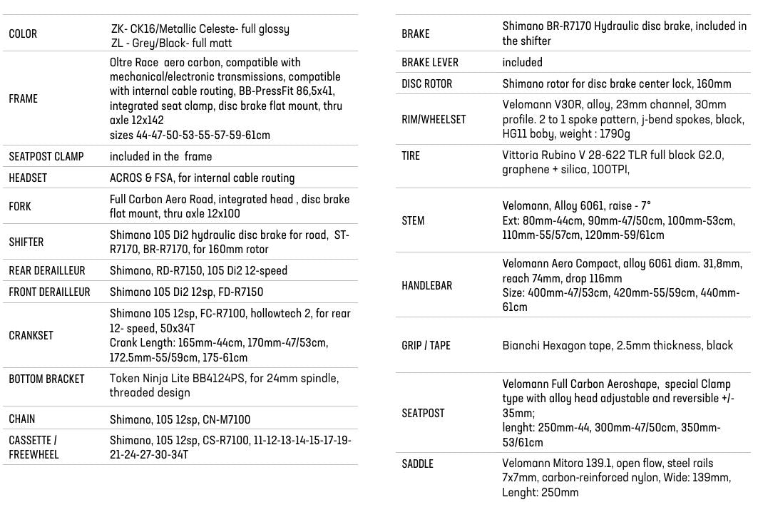 Eine günstigere Version mit der bewährten Ultegra oder 105 Di2, die die aerodynamische Form und die Renn-Geometrie des Oltre erbt. |
